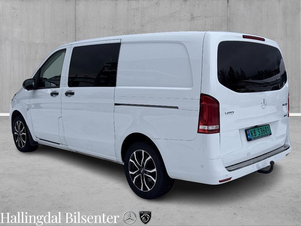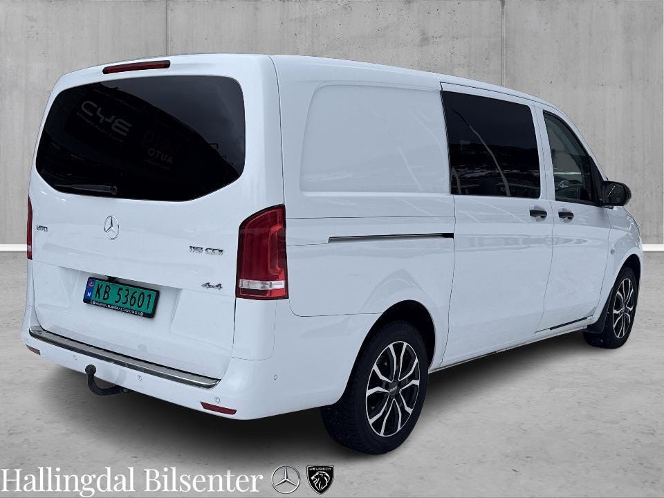 Pen og velholdt 2024 Mercedes-Benz Vito V119 A2 4MATIC aut. Toppmodell V119 med 190 hk og 440 Nm. Smidig 9-trinns 9G-Tronic automatgirkasse. Lang A2 karosseriutgave (mellomlang). Permanent 4MATIC firehjulsdrift sikrer gode kjøreegenskaper og god fremkommelighet alle årstider.