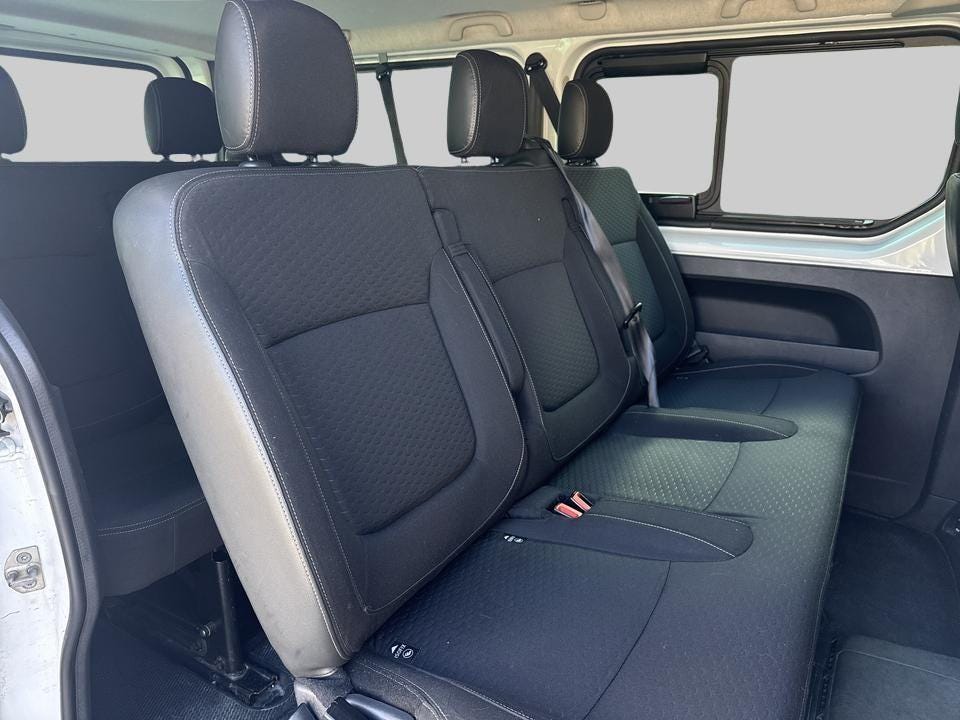 Opel Vivaro kan skilte med et romslig interiør designet for komfort og sikkerhet. Med sine Isofix-fester for barneseter er installasjonen enkel og trygg. Takket være de delte, nedfellbare og uttagbare baksetene er denne bilen svært fleksibel i bagasje- og setearrangement. Med 6 kollisjonsputer og tilhengerstabilitetssystem, garanteres både sikkerhet og komfort for deg og din familie, sammen med et to-soners manuelt klimaanlegg for optimal temperaturkontroll.