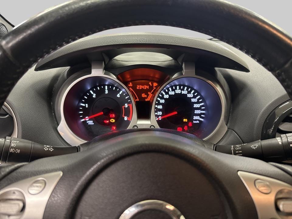 2012-modell Nissan Juke med kun 82,000 kilometer på telleren. Dette er en kompakt SUV som kombinerer sporty design med praktiske egenskaper og mye utstyr.